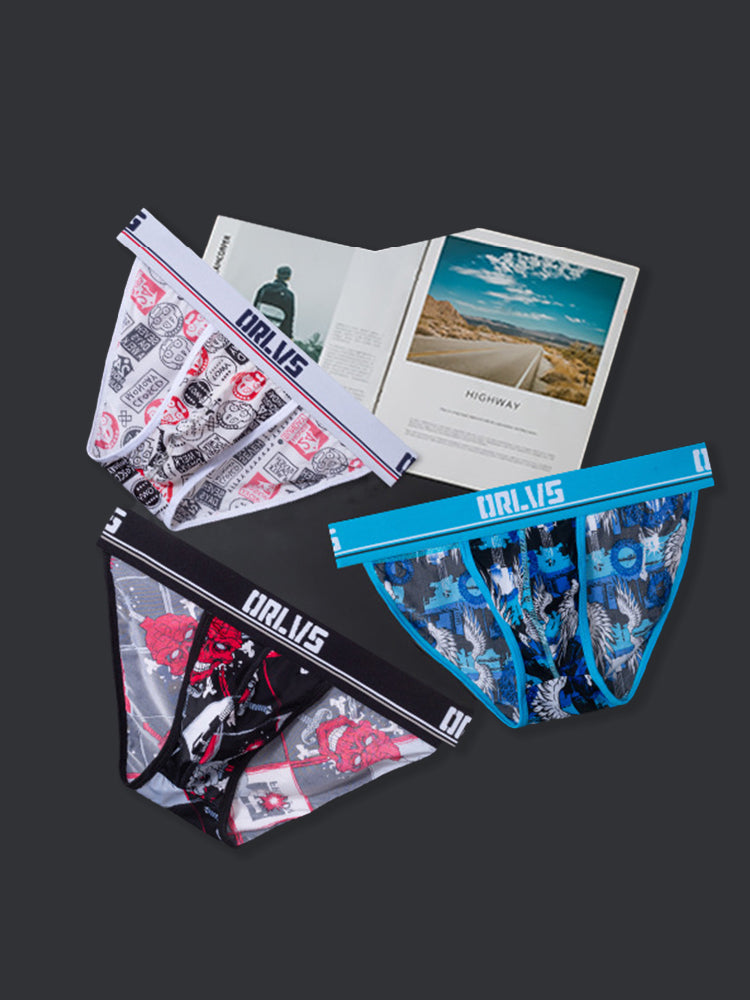 2 Pack Men's Breathable Ice Silk High-Cut Printed Bikini