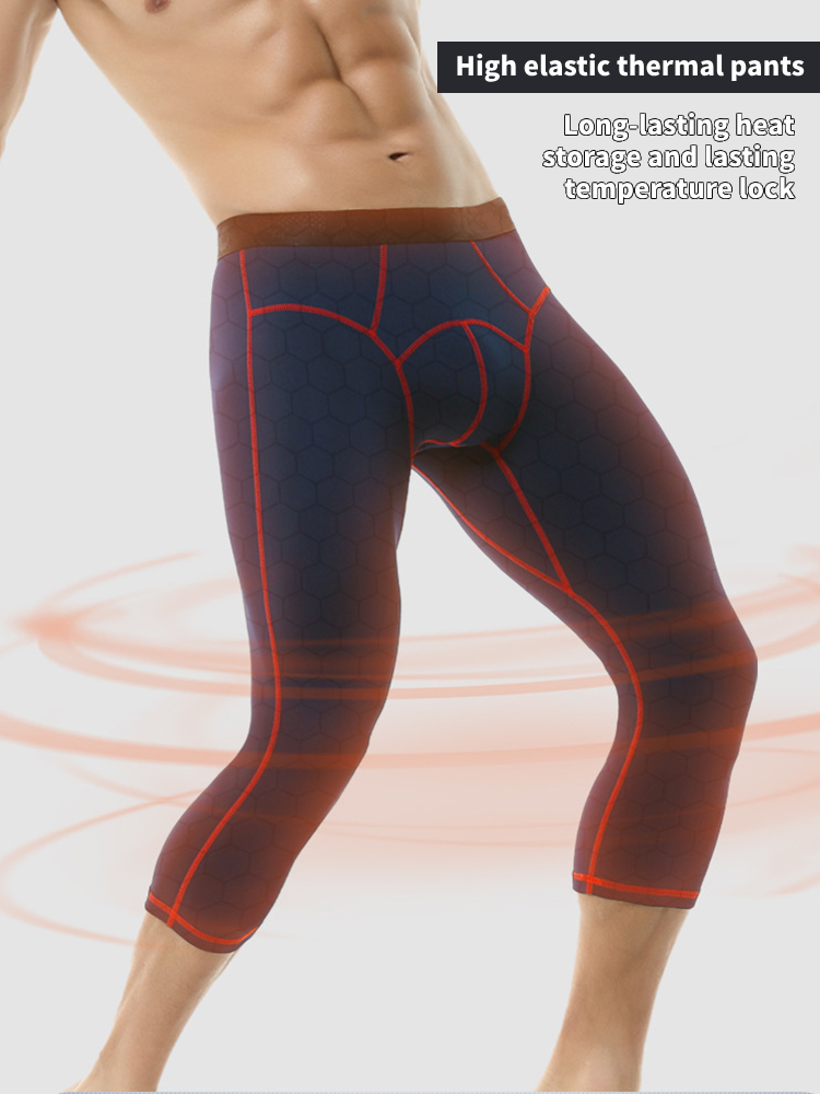 2-pack Men's Large Size High Elastic U-shaped Convex Pocket Warm Cropped Trousers