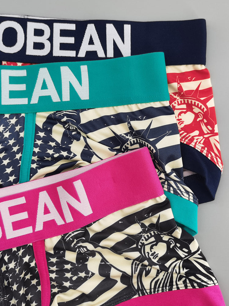 2 Pack Men's Statue of Liberty Print Comfortable and Breathable Trunks