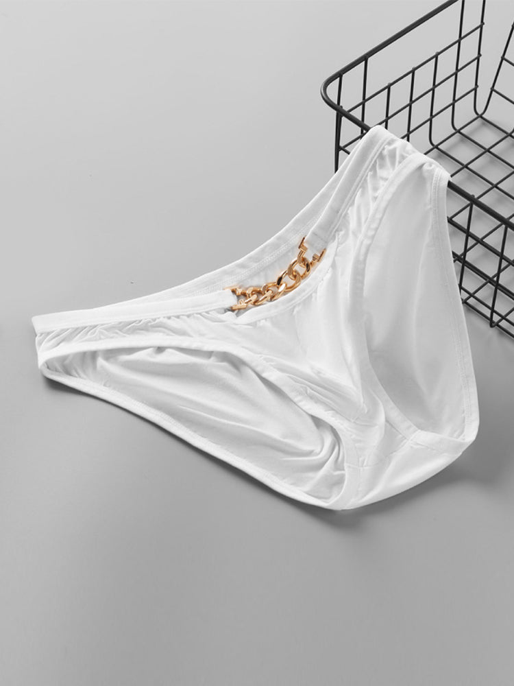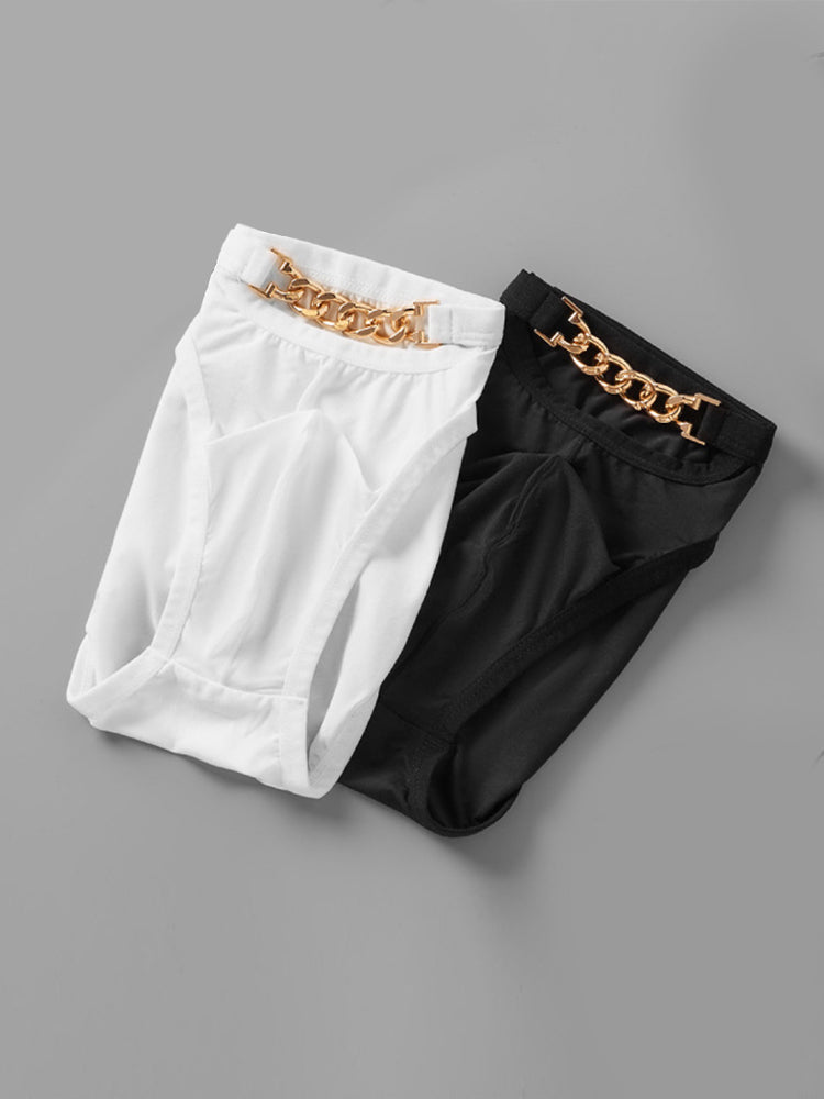 Our Men's Fashion-Forward Briefs �where bold design meets everyday comfort. These low-rise briefs feature a statement metal clasp detail and a contoured U-pouch design that provides both breathable support and a confident silhouette. Crafted from ultra-thin. moisture-wicking fabric. they keep you cool and dry with strategic airflow where it matters most. The single-layer construction offers a barely-there feel while the secure fit prevents shifting. making them perfect for all-day wear or special occasions. A daring twist on classic underwear that doesn't compromise on comfort �because feeling sexy should never mean sacrificing performance.