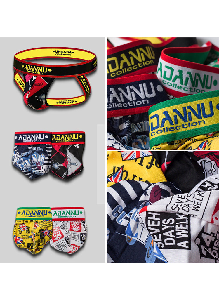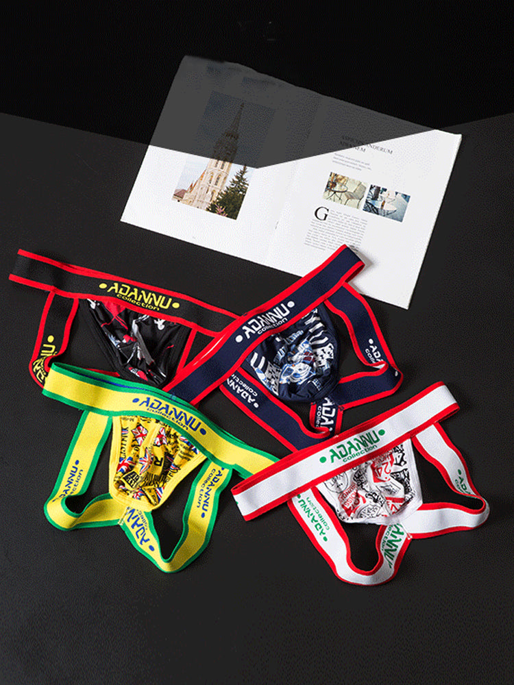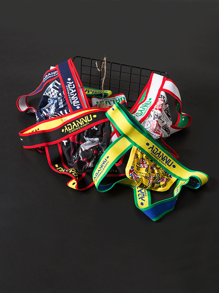 3-pack Men's Low-rise Wide-hem Elastic Printed Hip-baring Thongs