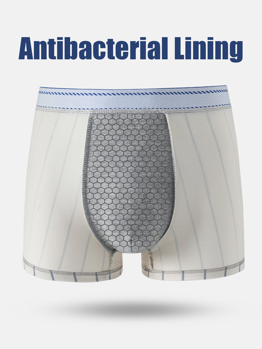 Our stylish men's trunks are designed for comfort and modern appeal. Made from a premium cotton blend. these trunks feature a classic pinstripe pattern and a contrasting blue waistband for a sophisticated look. The fabric is soft and breathable. ensuring all-day comfort. while the tailored fit provides excellent support. Perfect for everyday wear. these trunks combine style with function.