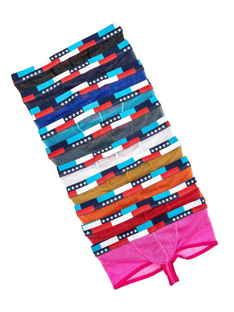 4-pack Men's Low-rise See-through Micro-mesh Pouch Shiny U-convex Wide-edge Boxer Briefs