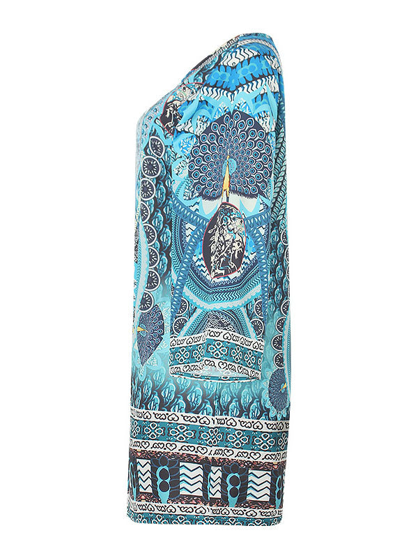 A-Line Flared Sleeves Printed Split-Joint V-Neck Mini Dresses