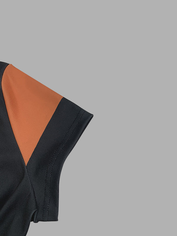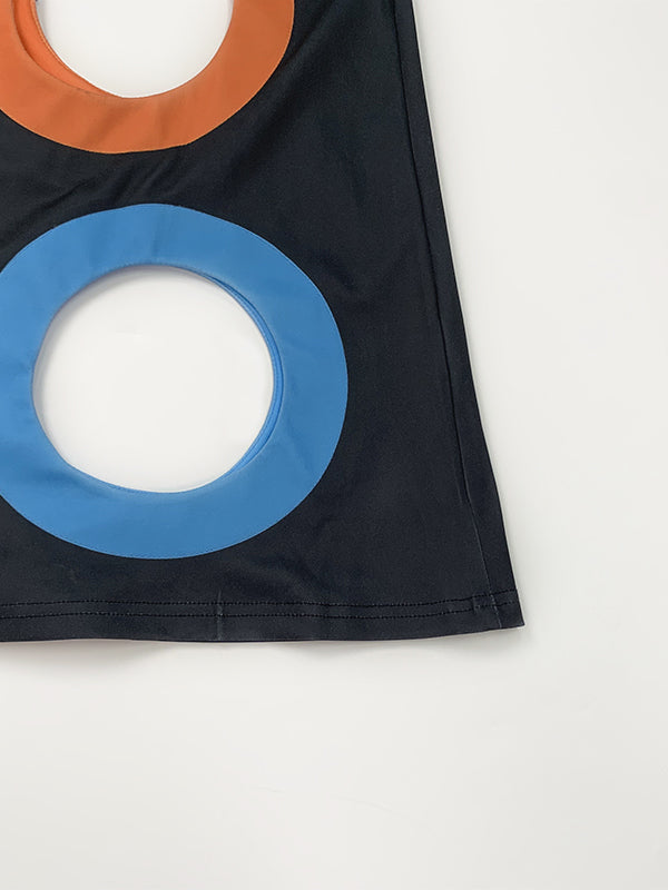 A-Line High Waisted Colorful Contrast Color Hollow V-Neck Maxi Dresses