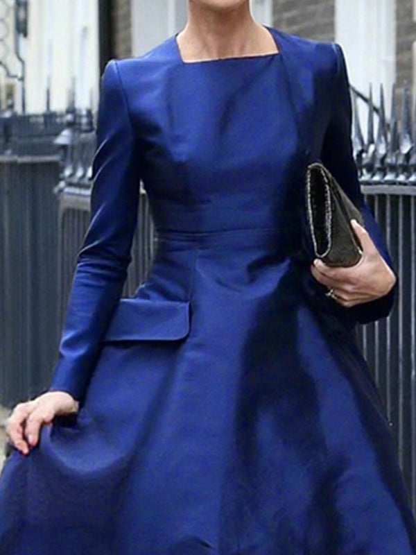 A-Line High Waisted Pockets Solid Color Square-Neck Midi Dresses