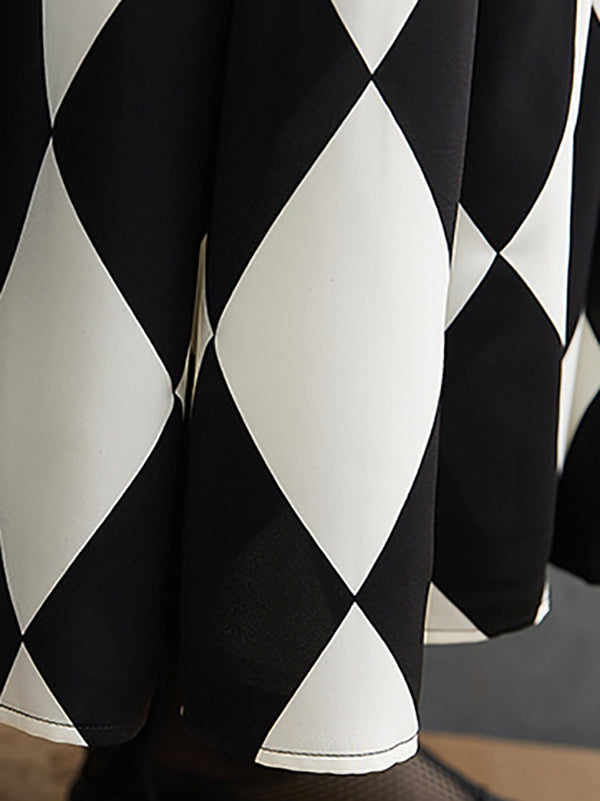 A-Line Long Sleeves Buttoned Plaid Polo Midi Dresses