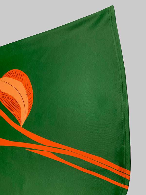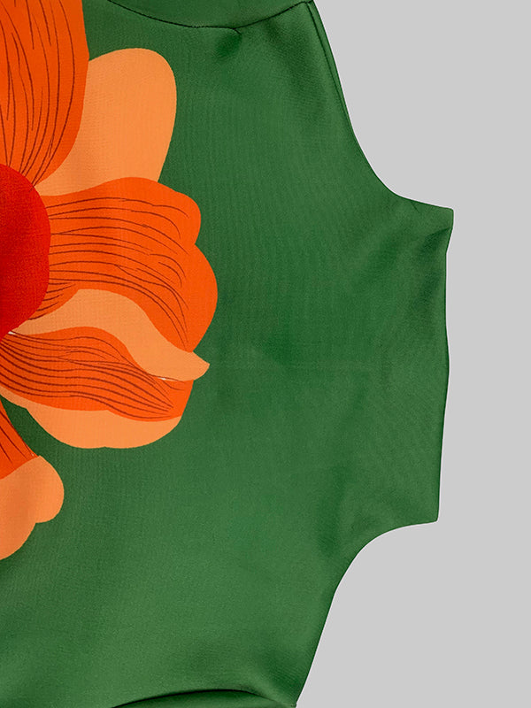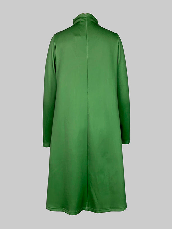 A-Line Long Sleeves Flower Print Split-Joint High Neck Midi Dresses