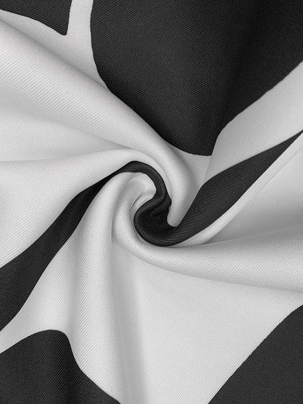 A-Line Long Sleeves Polka-Dot Split-Joint Mock Neck Mini Dresses