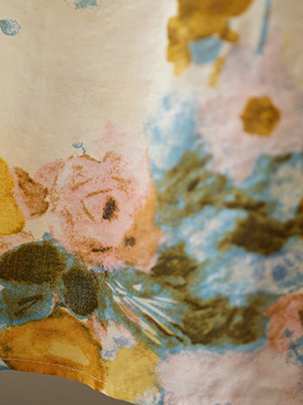 A-Line Loose Floral Printed Round-Neck Midi Dresses