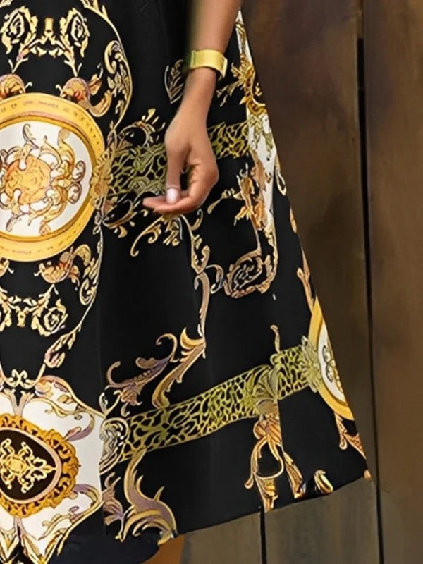 A-Line Sleeveless Contrast Color Pockets Round-Neck Midi Dresses