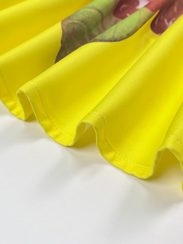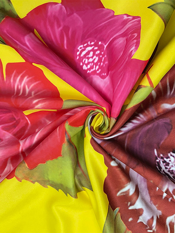 A-Line Sleeveless Flower Print Split-Joint V-Neck Maxi Dresses