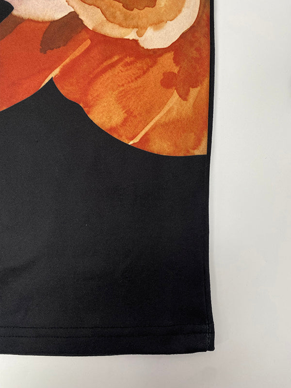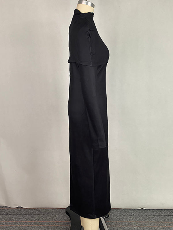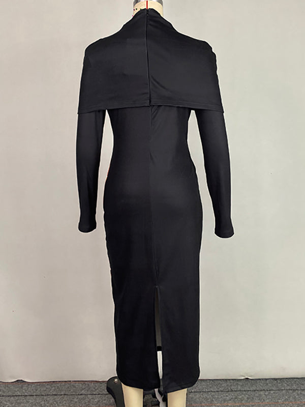 Bodycon Capelet Flower Print Mock Neck Midi Dresses