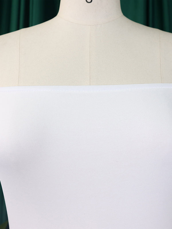 Bodycon Flared Sleeves Falbala Solid Color Split-side Off-the-shoulder Maxi Dresses