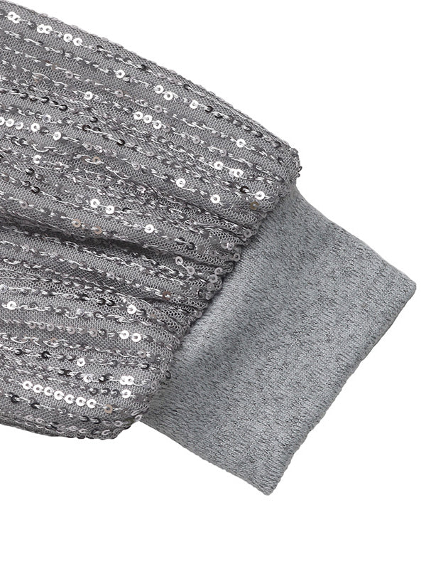 Bodycon Long Sleeves Sequined Split-Joint Round-Neck Mini Dresses