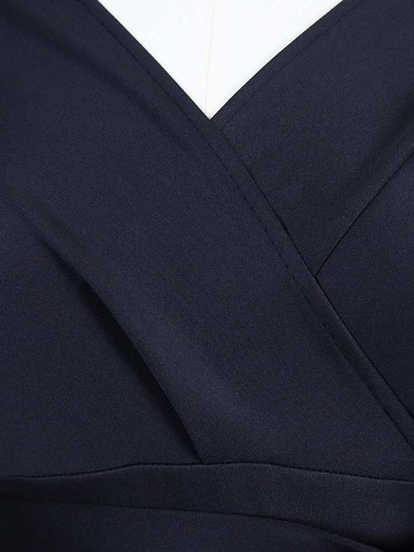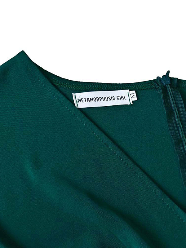 Bowknot Lace-Up Solid Color V-Neck Midi Dresses