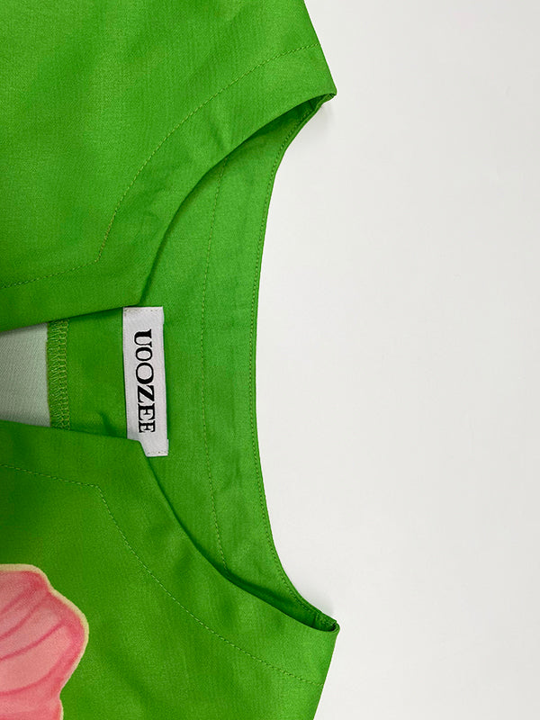 A-Line Loose Flower Print V-Neck Midi Dresses