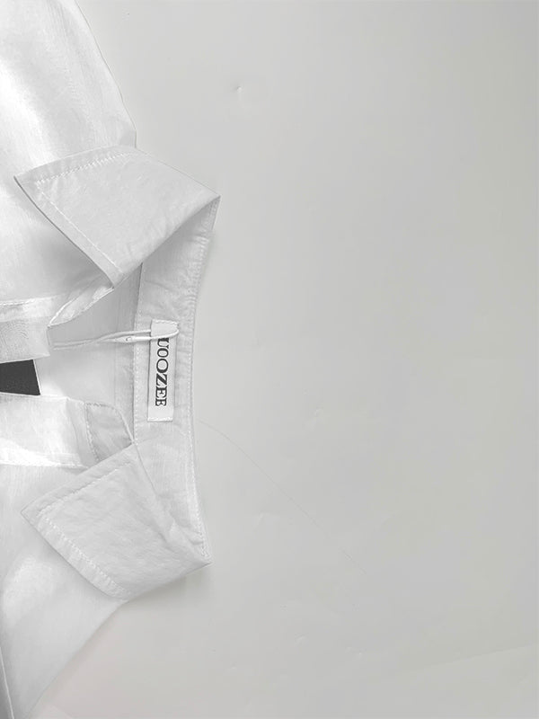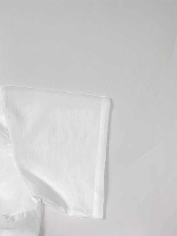Half Sleeves High Waisted Pleated See-Through Solid Color Lapel Midi Dresses Shirt Dress