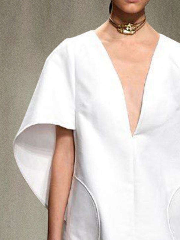 Half Sleeves Loose Solid Color Deep V-Neck Mini Dresses