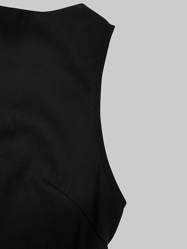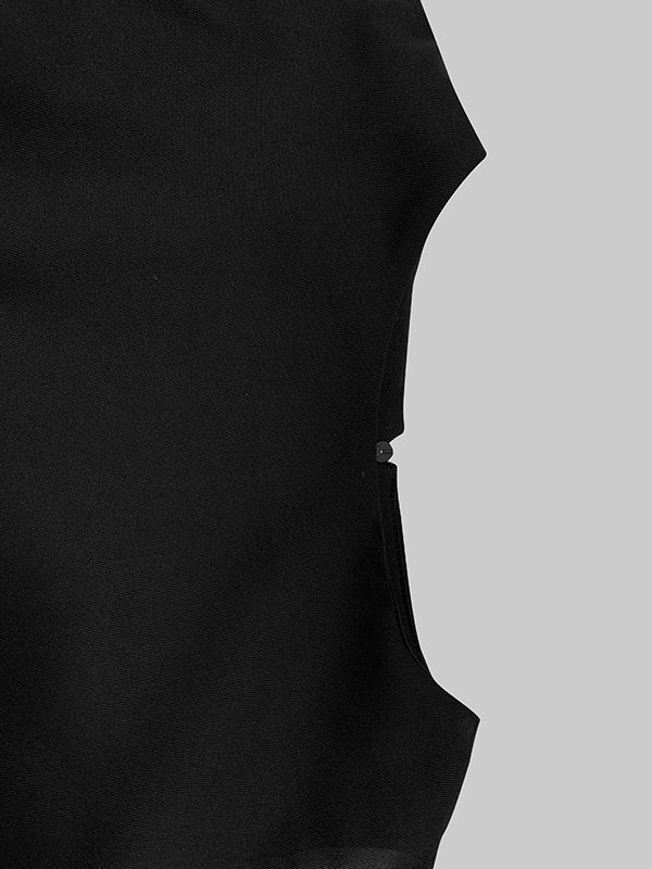Irregularity Asymmetric Contrast Color Round-Neck Maxi Dresses