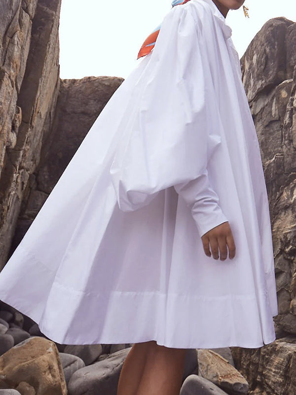 Long Sleeves Loose Buttoned Solid Color Stand Collar Mini Dresses Shirt Dress