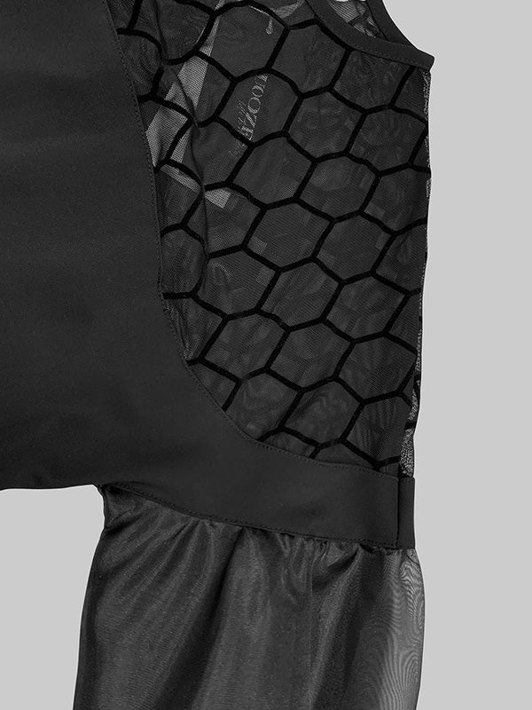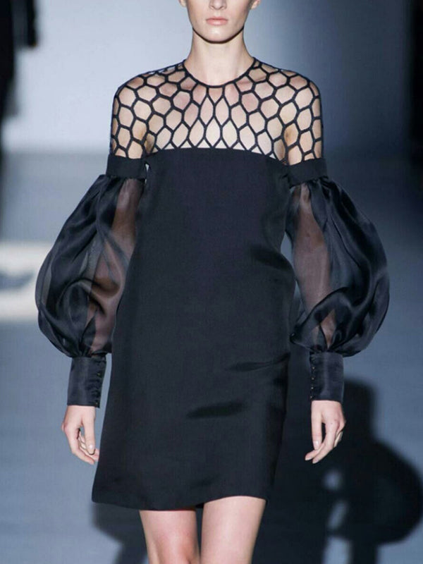Long Sleeves Loose Hollow Solid Color Split-Joint Round-Neck Mini Dresses