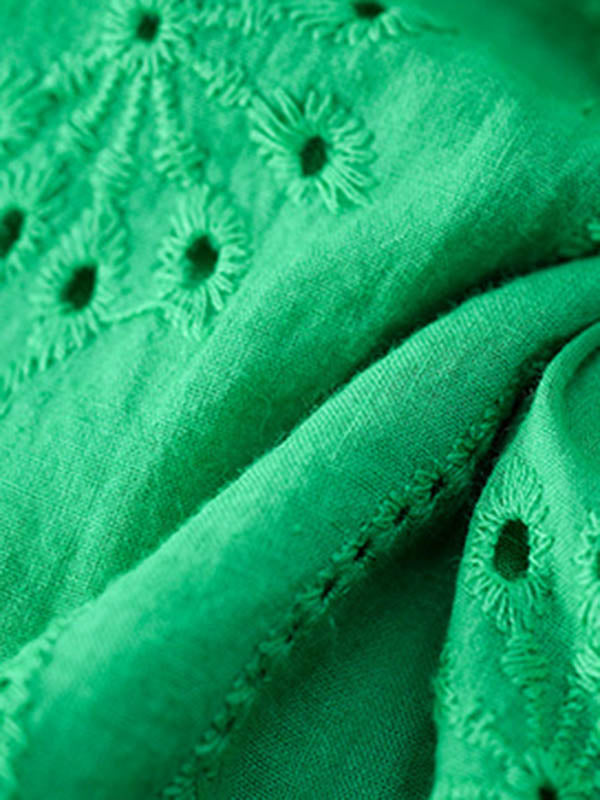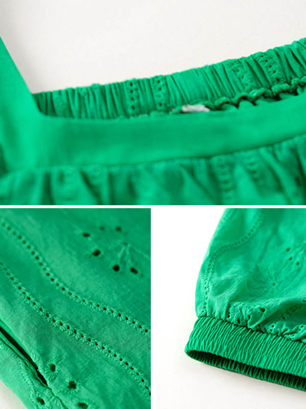 Loose Puff Sleeves Jacquard Solid Color Square-Neck Mini Dresses