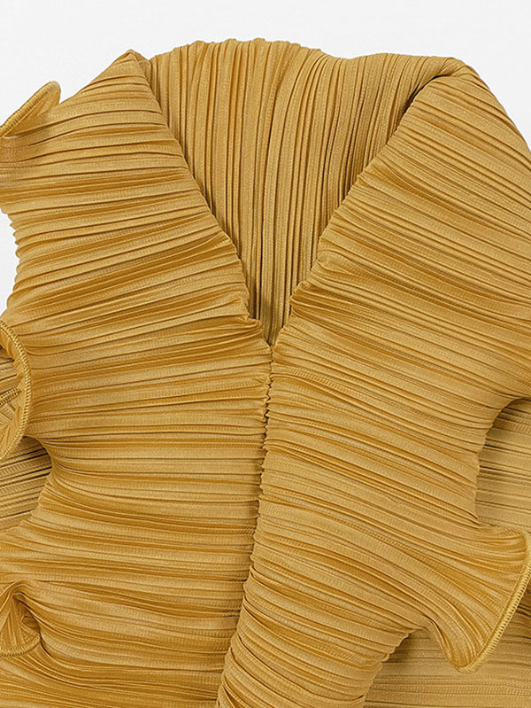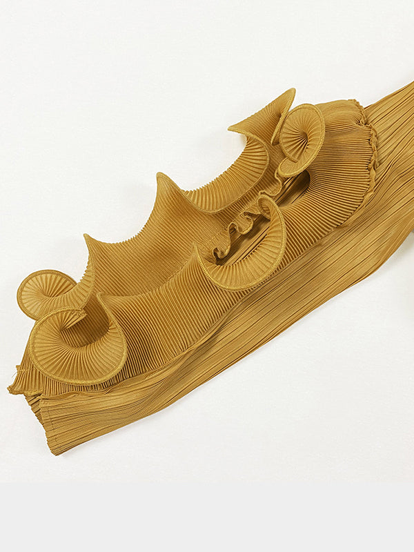 Original Loose Long Sleeves Tied Pleated Falbala Solid Color V-Neck Maxi Dresses
