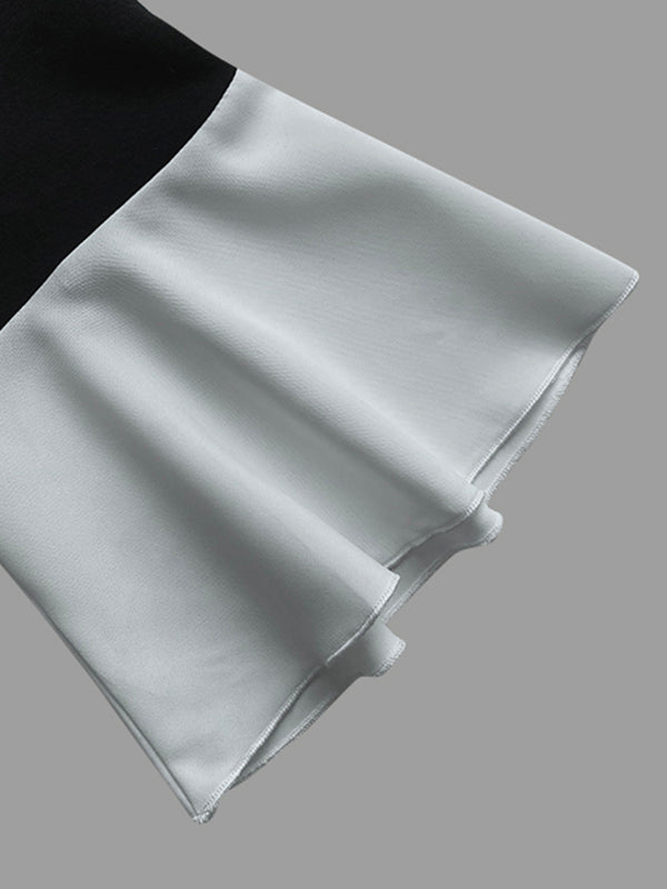 Flared Sleeves Half Sleeves Pleated Split-Joint Round-Neck Midi Dresses
