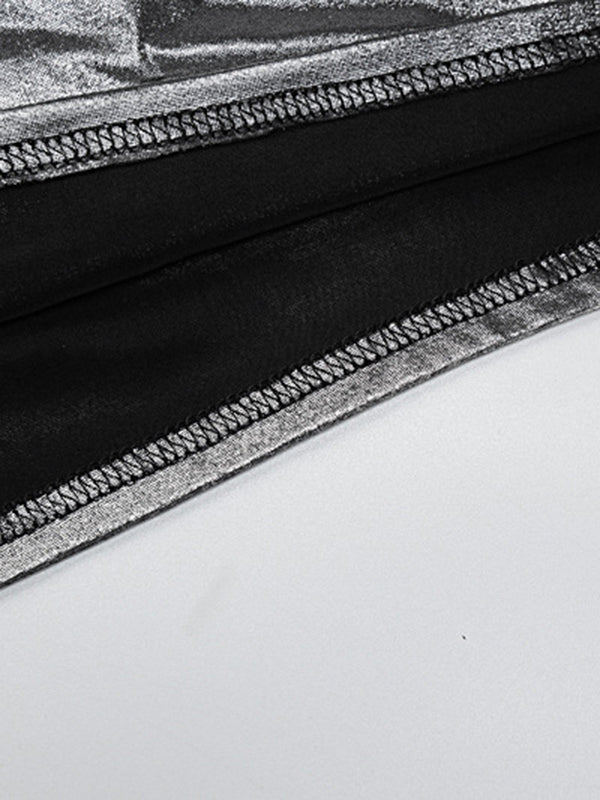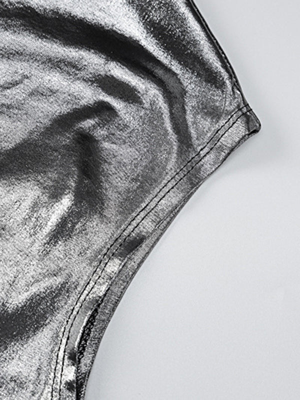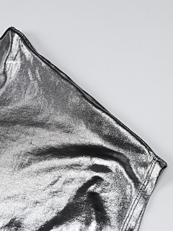 Skinny Asymmetric Shiny Solid Color Split-Joint One-Shoulder Evening Dresses Mini Dresses