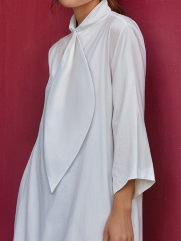 Loose Three-Quarter Sleeves Solid Color Stand Collar Mini Dresses Shirt Dress